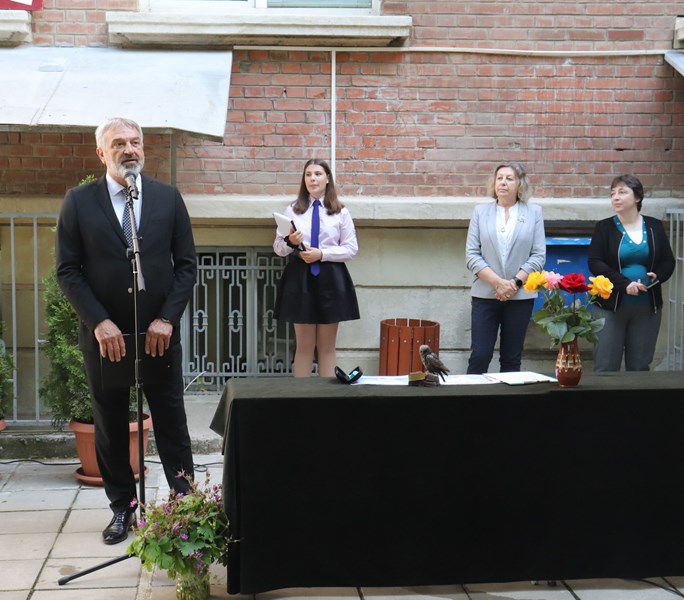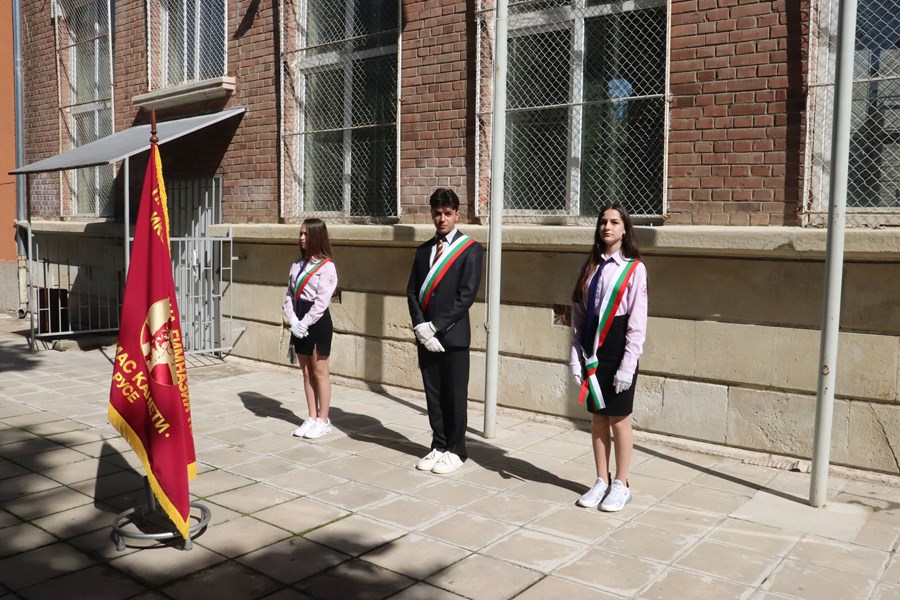 С издигане на националния флаг под съпровода на химна на Република България започна тържествената церемония по случай 24 май в Професионалната гимназия по икономика и управление „Елиас Канети“. На събитието присъства и областният управител Драгомир Драганов.