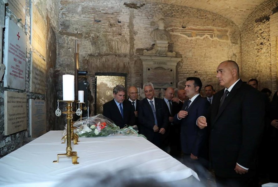 Министър-председателите Бойко Борисов и Зоран Заев и водените от тях официални делегации почетоха съвместно делото на Светите братя Кирил и Методий в базиликата “Санта Мария Маджоре” в Рим. Тук през 867 г. папа Адриан II освещава славянската писменост и славянските книги.