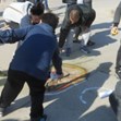 Десетки жители на Горна Оряховица днес боядисваха уличните дупки в града в знак на протест срещу лошото състояние на общинската пътна мрежа.