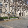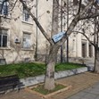 Указателна табела на улица "Александровска" кацна на едно дърво пред съдебната палата в Русе.