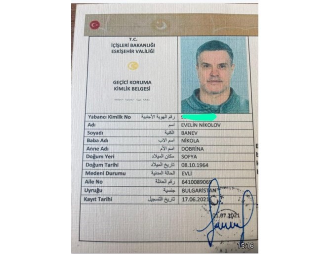 В публикацията на “Бакъркьой” са приложени три документа - за временна закрила, лична карта и паспорт. На всички е неговата снимка. На първия са описани коректно данните му, майката, бащата и датата на регистрация на документа - 17 юни 2021 г. - три месеца преди ареста му в Украйна.