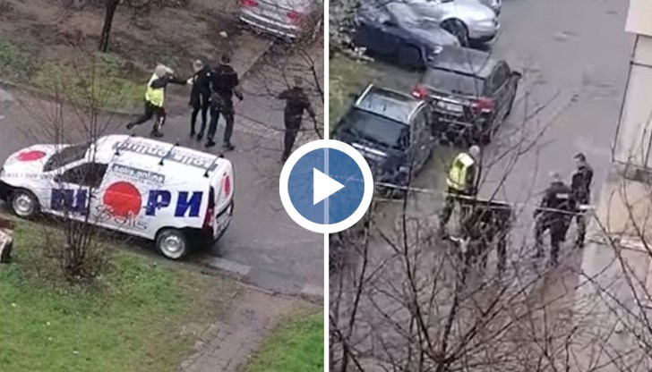 Изглед от бул.“Александър Батенберг“ 6 към „Никола Петков“ 47. Действието се разигра в 9 без 10 днес. Предполагам, че и преди това го удряха в тунелчето под блока, защото се чуваха нехуманни писъци от същото лице. Това ме предизвика да изляза на терасата.. родната полиция ни пази“, гласи текстът към видео кадрите.