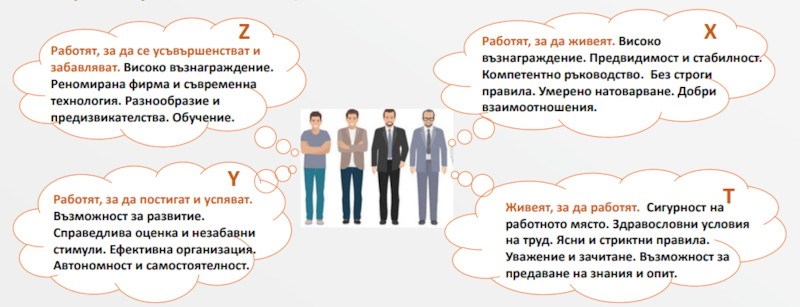 Задълбочават се различията между поколенията в дигиталните компетентности, в ценностите, мотивацията, в моделите на общуване, в отношението към авторитетите, коментира Томчо Томов. По думите му, става все по-трудно да се управлява колектив, традиционните модели в управлението на хора вече не работят ефективно, всяко поколение държи на определен тип стимули. Най-младите винаги търсят промяна на статуквото, те искат силен и вдъхновяващ водач, емоционален ментор. Изпитват тревожност по отношение на уменията си и искат да ги развиват, важно им е да се забавляват в работата, а възрастните живеят, за да работят, държат на здравословните условия на труд, както и на стабилни ръководители, които да вземат правилни ценностно решения, които да са справедливи.