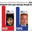 Според последното изследване на „Галъп“, проведено по телефона на 27 и 29 януари сред 816 души в цялата страна и финансирано от самата агенция, за БСП биха гласували 28,7 :, докато за ГЕРБ – 27,6.