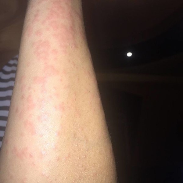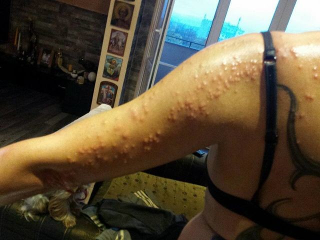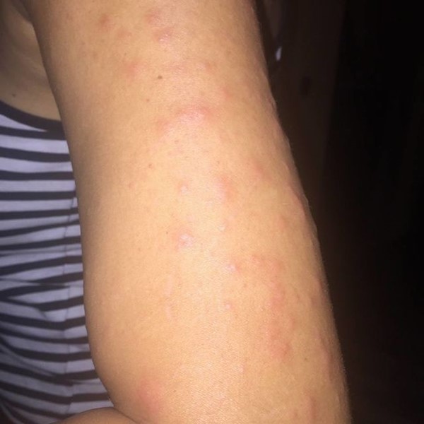 Следва вечерта, налага се да се спи. Ляга и нещо започва да пълзи по тялото й и да я щипе. Поглежда и вижда това - някакъв вид насекоми или буболечки или и аз не знам, и тя не знае какво е, по цялото легло. За броени минути започва обрив, който сърби много.
