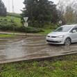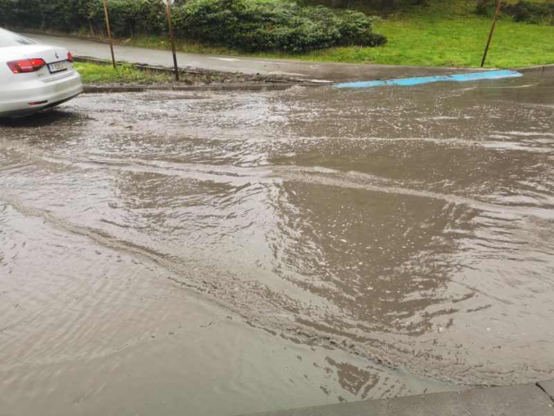 Фотографиите ясно показват, че автомобилите буквално "плуват" във водата при преминаване през кръстовището. В една от шахтите има натрупани растителни отпадъци, които допълнително възпрепятстват нормалното оттичане на водата.