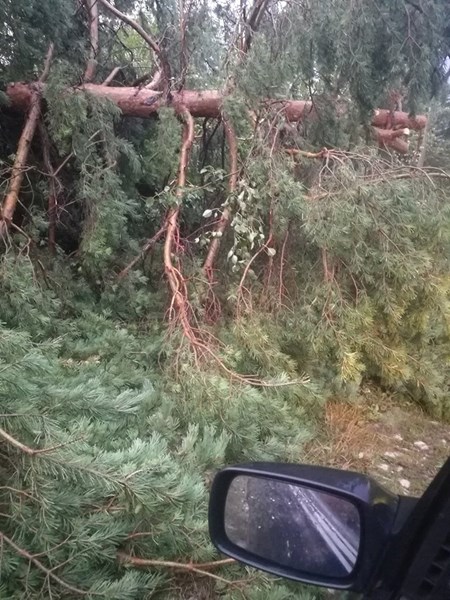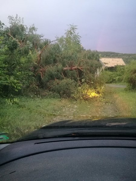 Кадри, изпратени до редакцията на Dunavmost.bg, показват изкъртени бетонни електрически стълбове, изтръгнати от корен огромни дървета, разрушени покриви на къщи, унищожени реколти в градините, наводнени пътища.