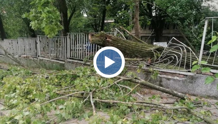 Буря, придружена с интензивни валежи и гръмотевици, събори дърво в двора на областната болница в града. Щетите са само материални – по оградата на двора.