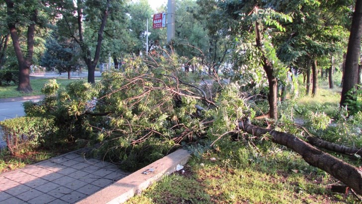 Паднали дървета има и в Русе, главно в района на ПГ по строителство, където огромен клон се е откършил и при падането е пречупил и ствола на съседно дърво. Цялата дървесна маса се е стоварила на тротоара, като е образувала непроходима барикада от листа и клони.