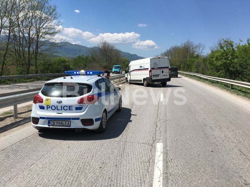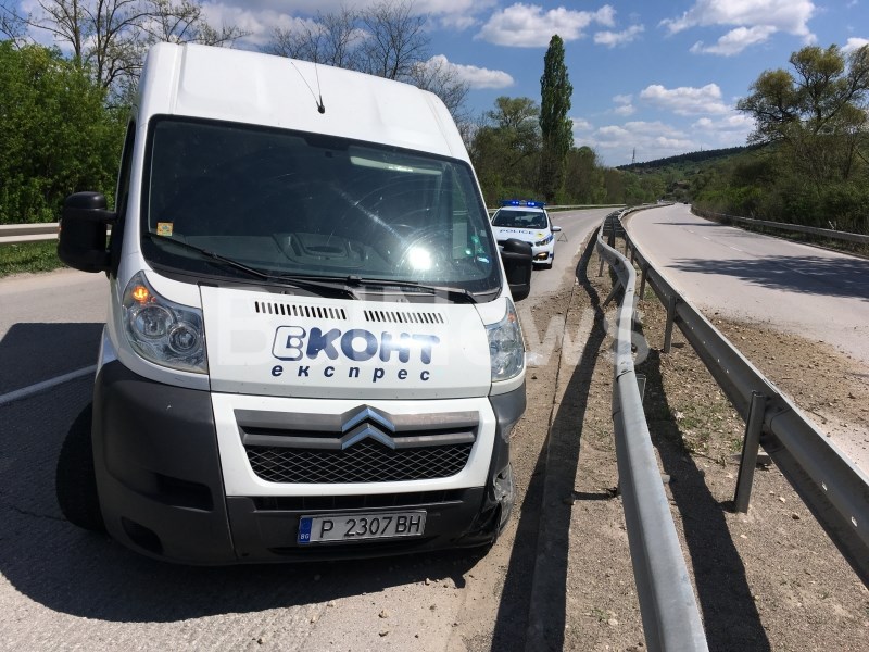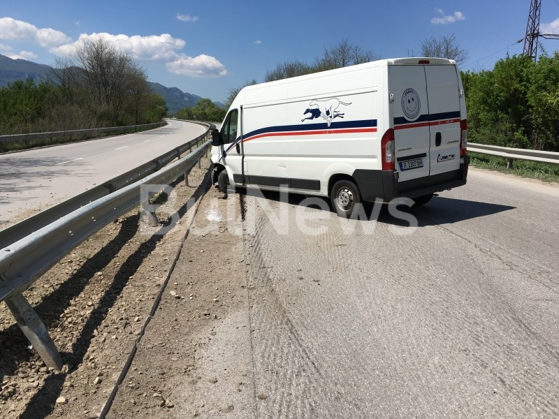 Товарен микробус на куриерската фирма „Еконт“ се е ударил на международния път Е-79 между Мездра и Враца, съобщава BulNews.bg.