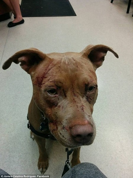 Равносметката от нападението е лошо ранен питбул с белези по муцуната, както и дълбоки рани по ръцете на стопанката му.