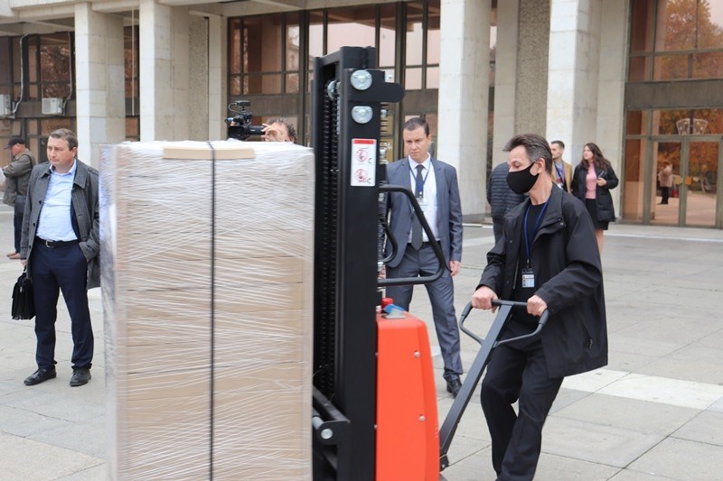 При засилени мерки за сигурност преди броени минути в Русе пристигнаха бюлетините и изборните книжа за предстоящия на 14 ноември вот 2 в 1