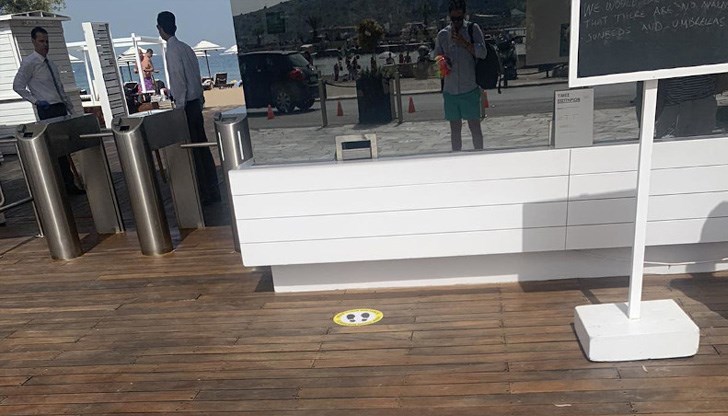 На входа всеки носи маски въпреки високите температури, които преобладават, докато на земята са поставени специални стикери, за да се спазват необходимите разстояния.