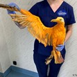 Ярко оцветеното създание, наподобяващо тропическа птица, е било отнесено в специализираната болница за животни "Тигиуинкълс" в Бъкингамшър. Служителите бързо са установили, че не става въпрос за екзотично пернато, а за чайка, покрита с къри или куркума на прах, пише БТА.