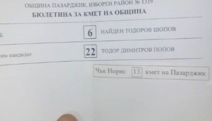 Господари на ефира се сдоби със снимка на бюлетина от местния вот в Пазарджик, където е вписан и Чък Норис.