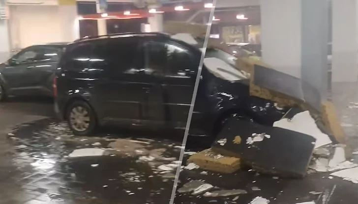 Част от тавана на паркинга на "Кауфланд" във Варна падна върху кола