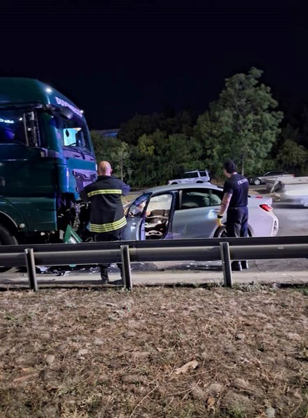 На мястото на катастрофата има полицейски екип, а участъкът е отцепен за движение. Към момента няма информация за пострадали или жертви при пътния инцидент.