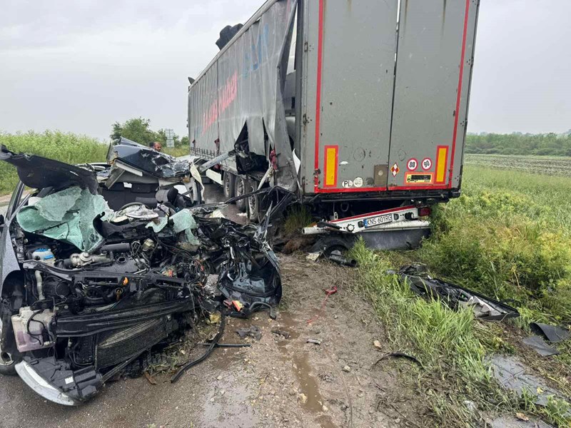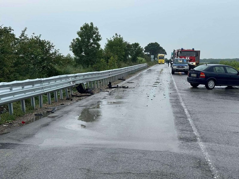 Според неофициална информация, влекач с полуремарке е навлязъл изцяло в насрещната лента на движение и е ударил насрещно идващия лек автомобил.