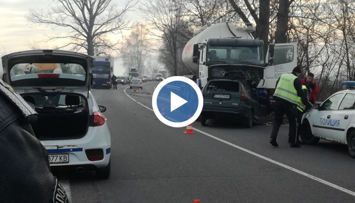 Инцидентът стана около 9.20 ч. Товарен автомобил се е блъснал челно в лек автомобил Рено със старозагорска регистрация малко преди разклона за град Мъглиж.