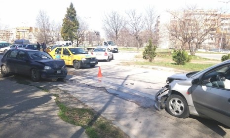 Автомобили "Пежо" и "Опел Корса" са се блъснали челно днес около 13 часа на ул. "Никола Й. Вапцаров" в кв. "Дружба" 3.