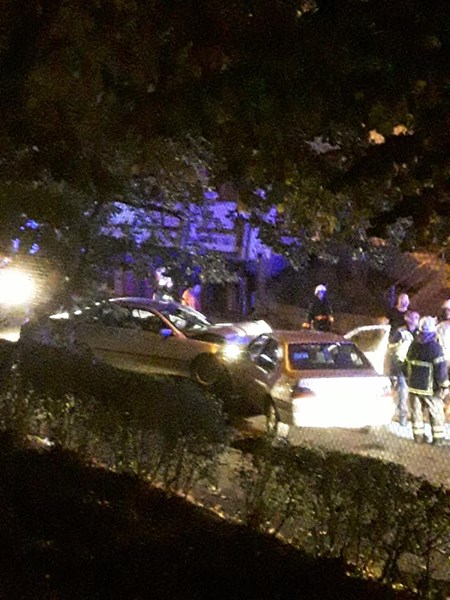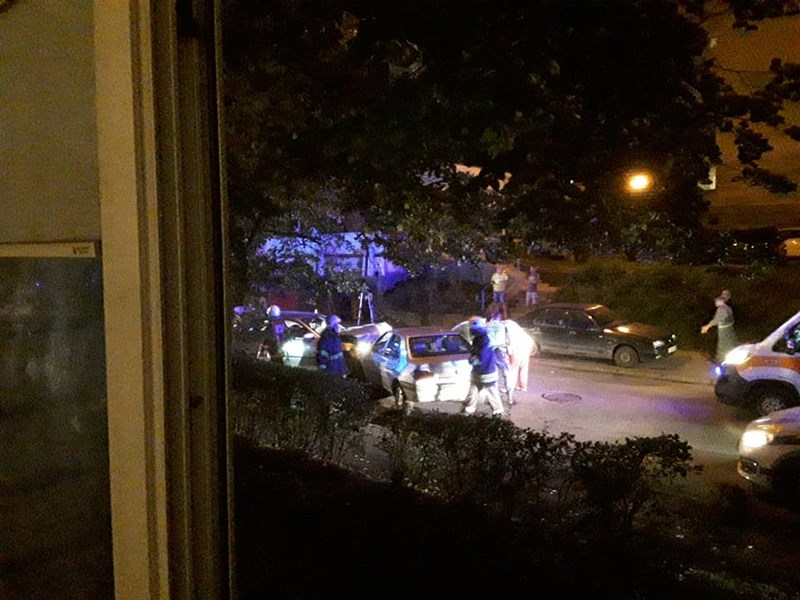 Два леки автомобила се "целунаха" тази вечер пред блок "Валентина Терешкова", на улица "Петрохан" № 98.