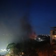 Ясно се вижда черен дим, който обгази целия квартал, идващ от релсите зад малкия стадион.