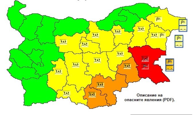 Оранжев е кодът за 3 области на страната. Това сочи справка на сайта на Националния институт по метеорология и хидрология (НИМХ) към Българската академия на науките (БАН).