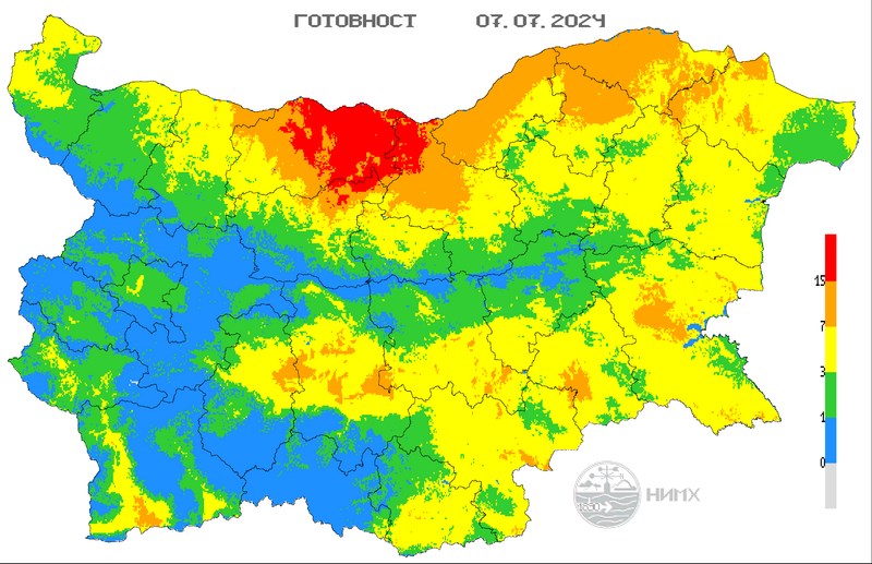 Обявиха червен код за опасност от пожари в някои общини в Северна България. Предупреждението е за общини в областите Плевен, Ловеч и Велико Търново, става ясно от данни, предоставено от НИМХ. Оранжев код е обявен в 8 области на страната, а жълт - в 14.