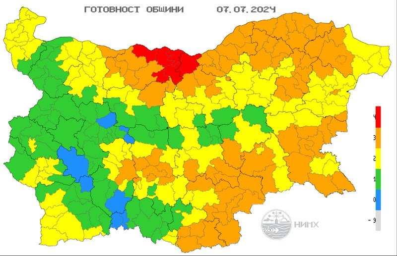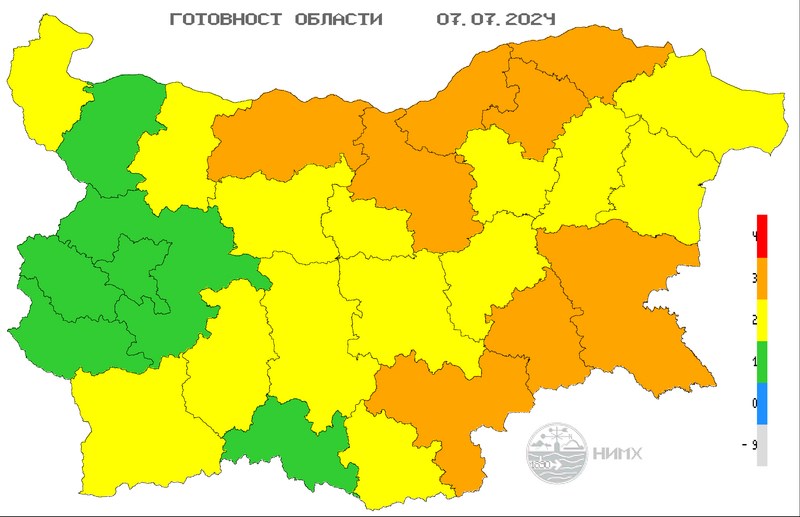 Оранжев код е обявен в 8 области на страната, а жълт - в 14