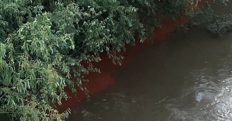 Деца, играещи в района край Сарайския мост, са забелязали ивицата червена вода и са направили снимки и кратко видео, предаде Русе Медиа