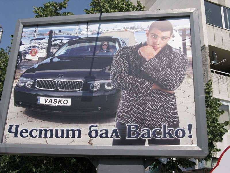 На колажа се вижда, че Васко вече е пораснал, седи мускулест в замислена поза и очаква бъдещето. А зад него има морски пейзаж, явно пожелание за лек и приятен живот и разбира се спортен автомобил в емблематичното черно. И ние му пожелаваме светло бъдеще и дано следващите проекти по улиците в негова чест да са граматически издържани!
