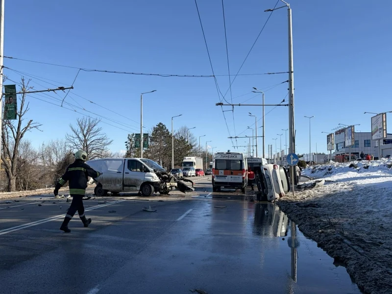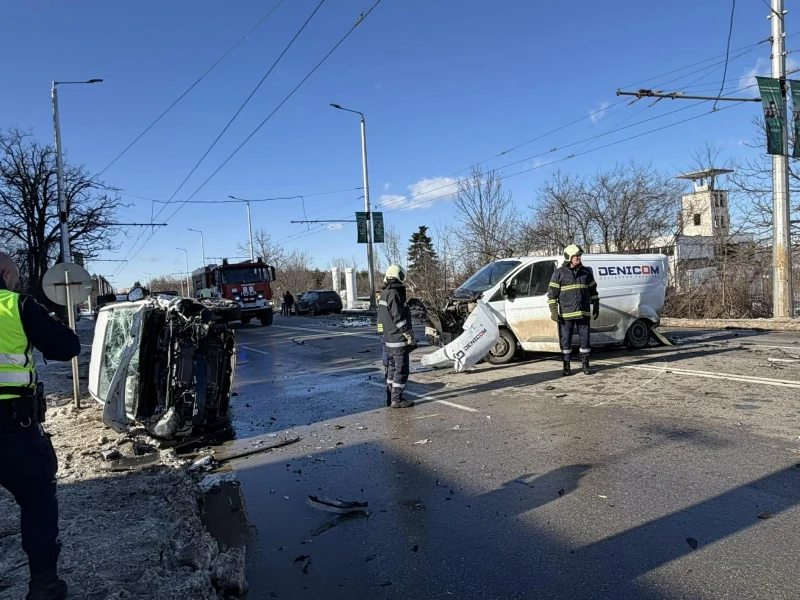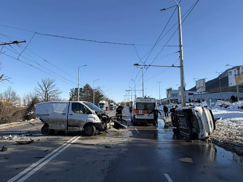 При верижния сблъсък са пострадали шофьорът на микробуса и пътничка от лекия автомобил. На мястото на инцидента бяха изпратени три полицейски екипа, две линейки и екип на пожарната. Движението остава напълно парализирано и в двете посоки, като автомобилите изчакват на място или са принудени да търсят обходни маршрути.