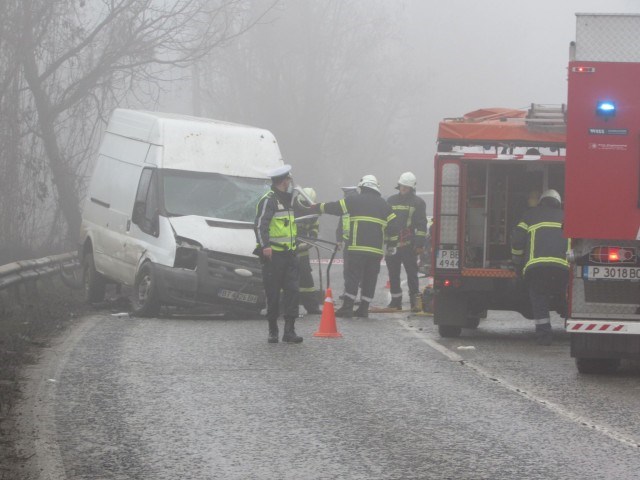 Сигнал за произшествието е подаден към 12.35 часа. Блъснали са се два микробуса. На мястото веднага са изпратени екипи на полицията, на противопожарната служба и на Спешна помощ.