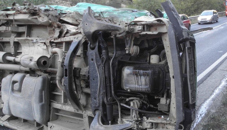 На лява крива и прекъсната права линия се блъскат лек автомобил, пътуващ посока Кресна-Симитли, и микробус. След удара товарният микробус се обръща на лявата си страна. При удара е откъснато предното му дясно колело.