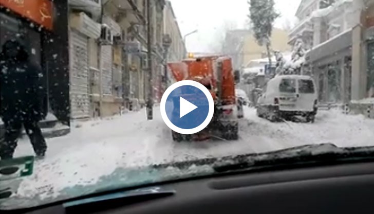 Русенец сподели в социалната мрежа видео, демонстриращо как чистят снегорините в центъра на града.