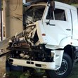 Шофьорът е оцелял, но камионът е толкова тежко повреден, че от него могат да бъдат използвани общо взето само колелата и част от оборудването.