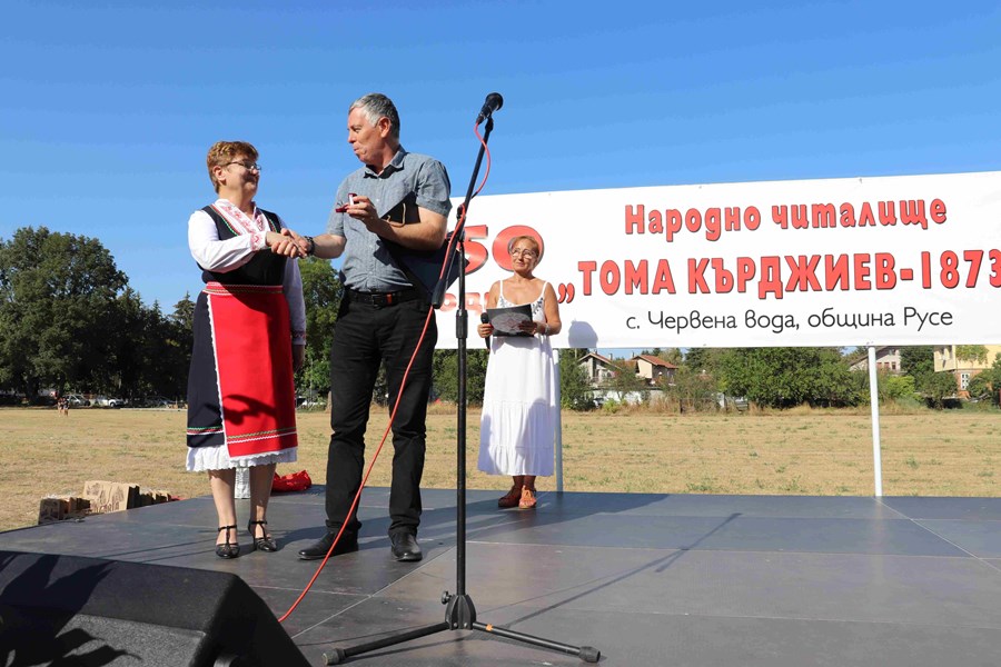 Това е Народно читалище „Тома Кърджиев – 1873“ в село Червена вода, което днес посрещна годишнината си с богата тържествена програма. Сред гостите на събитието бяха областният управител Данаил Ковачев, кметът на Община Русе Пенчо Милков, председателят на Общинския съвет Иво Пазарджиев, народният представител Златан Златанов, както и други представители на държавната и местната власт.
