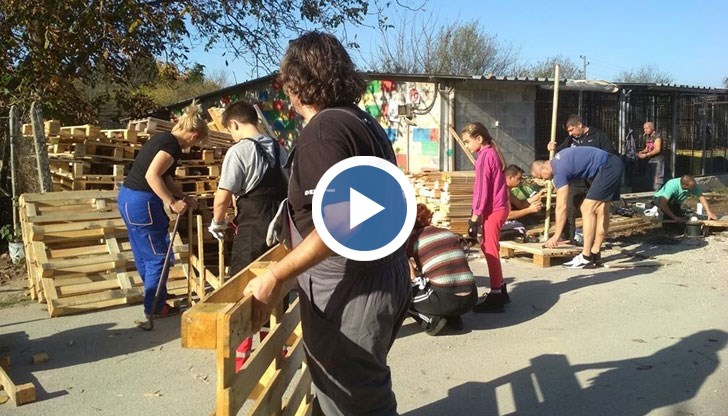 Разпределени на екипи, около 30 доброволци превърнаха стари дървени палети в кучешки колибки, информира NOVA. В тях ще бъдат настанени кучетата, за които няма подслон в приюта или пак тези, чийто колибки вече са остарели. Една част от доброволците помагаха с майсторлък, друга част - с идеи.