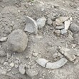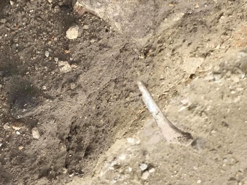 С човешки черепи, кости и челюсти са осеяни купчините пръст, извадени от изкоп източно от Мъглиж