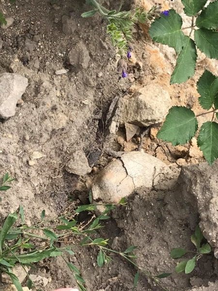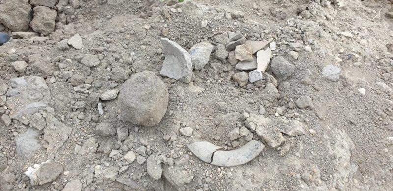 Екип на местната телевизия установи, че стотици човешки останки са изскочили заедно с извадената пръст от мащабния изкоп. Навсякъде има и парчета от керамика в черен и червен цвят. Покрай човешките има и животински останки.