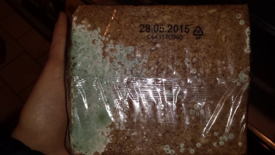 Пазарувайки в голяма търговска верига се натъкнах на това пакетче с мухлясали хлебчета, при това с доста дълъг срок на годност.