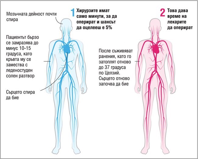 Лекарите замразяват пациента и печелят време за операция.