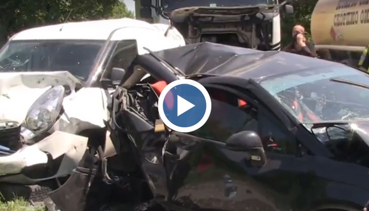 Зад тях пък се движел ТИР с българска регистрация. Той на свой ред блъснал „Опел“-а отзад, като по този начин двата леки автомобила останали затиснати като в сандвич между камионите. Трети румънски автомобил сложил капак на верижната катастрофа.
