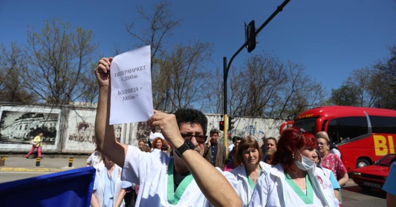 Началната заплата на лекар да бъде 2000 лв., на медицинска сестра - 1500 лв., на санитар - 910 лв., каза пред журналисти Красимир Митов - председател на Синдикат "Защита" - организатор на протеста. За кратно протестиращите блокираха движението по бул. "Данаил Николаев", информира Дарик.