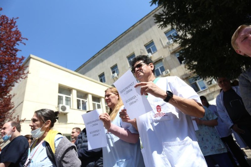 Лекари, медицински сестри и санитари, работещи в столичната болница "Царица Йоанна - ИСУЛ" излязоха на протест с искане началните им възнаграждения да бъдат повишени.