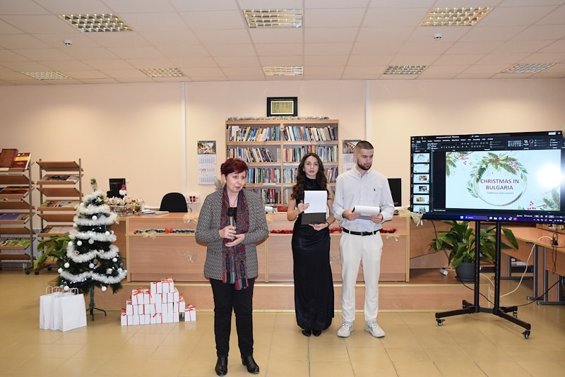 Доц. д-р Емилия Недкова запозна присъстващите със символиката на българските коледни традиции. Като част от програмата чуждестранните студенти сурвакаха ръководството на университета за здраве и берекет, след което представиха музикална програма и танци.