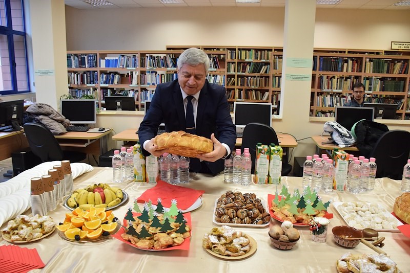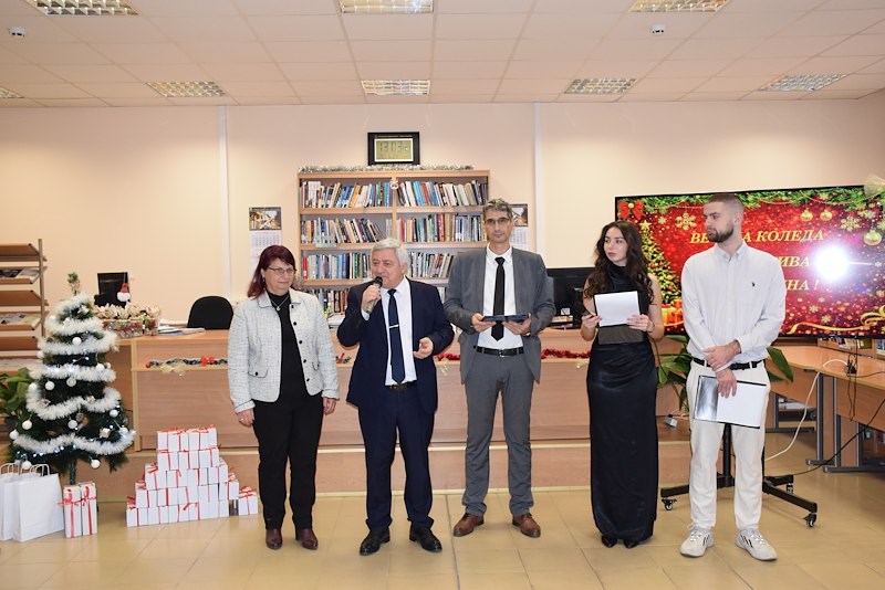 Акад. Христо Белоев спази обичая и разчупи обредната пита на подредената традиционна трапеза.Празникът имаше и благотворителен характер. Студентите изработиха коледни сувенири, които ще бъдат дарени на децата и младежите от Центъра за настаняване от семеен тип за деца и младежи с увреждания "Розовата къща".