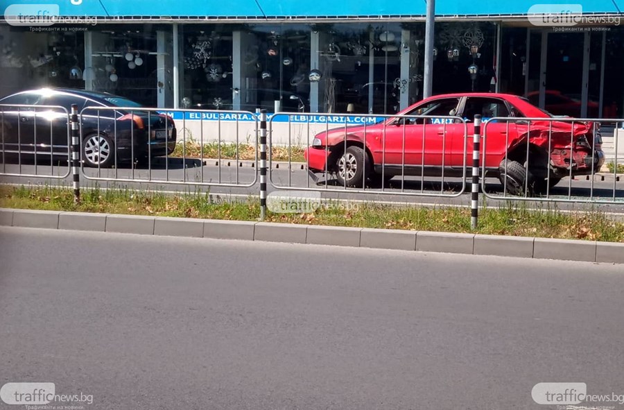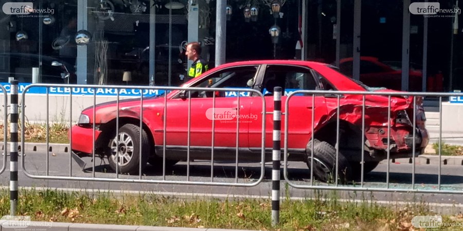 Той е шофирал по бул. "Шести септември", като в района около кръговото кръстовище с ул. "Владая" се е ударил с "Ауди" А4. Немското возило е с помляна задница и страница, а стъкла има навсякъде по пътя.