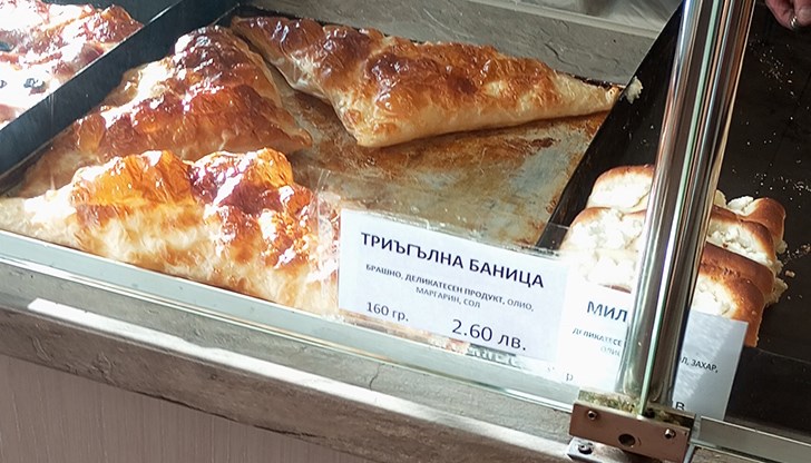 Обикновената баница с имитация на сирене (деликатесен продукт) и маргарин вече струва 2,60 лева. Марусята с кренвирш вече струва 2,70 лева, а Тутманикът, който също е направен с деликатесен продукт и маргарин струва 2,60 лева.