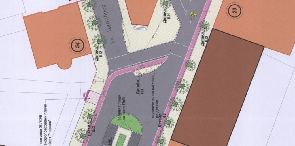 От предварителната схема се вижда, че едните колчета заграждат пешеходна пътека, а другите велоалея.